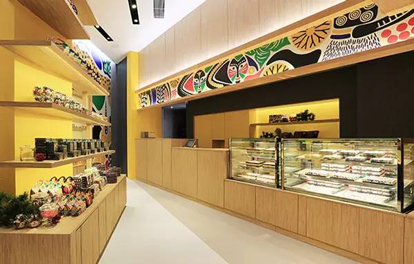 店内空间的展示也延续了品牌的形象色和装饰图案、辅助图形,令人耳目一新。