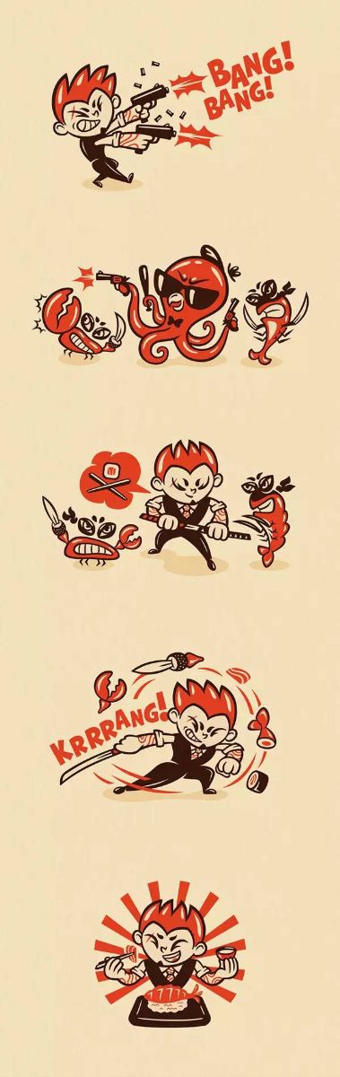 因为是快餐外卖品牌,所以他们的理念就是送货速度比子弹还要快!并且结合日本的漫画文化,为品牌创造了一系列的卡通形象,就算不买他们的食品,也想把包装细细看完。