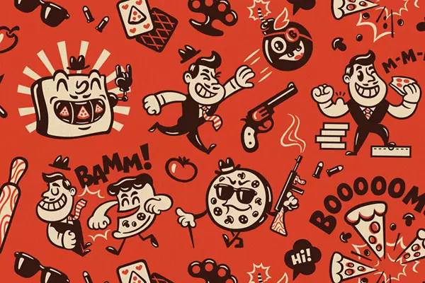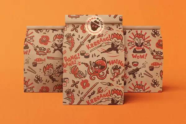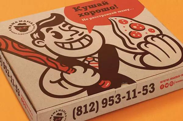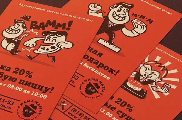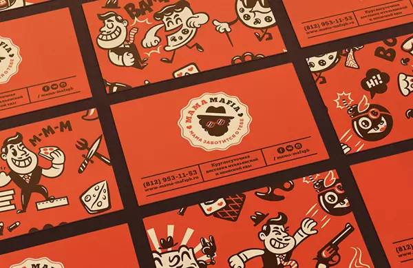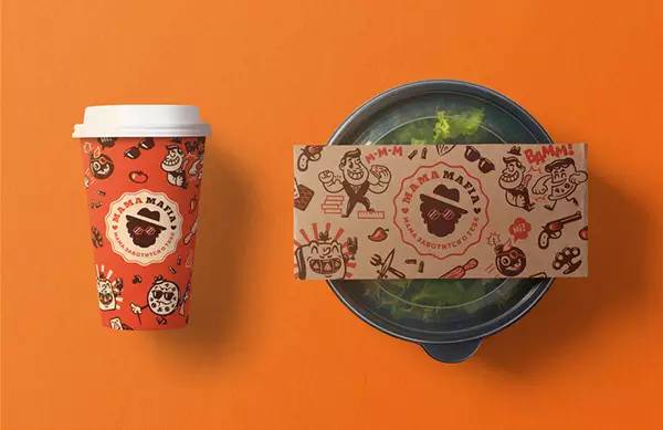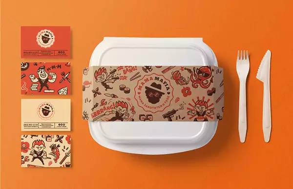 最为有趣的是这个叫 Mama Mafia 的品牌,这是一个在日本经营的充满意大利文化的快餐外卖,他们的VI最大的特点是把“妈妈(Mama)”和“黑手党(Mafia)”的元素结合在了一起。