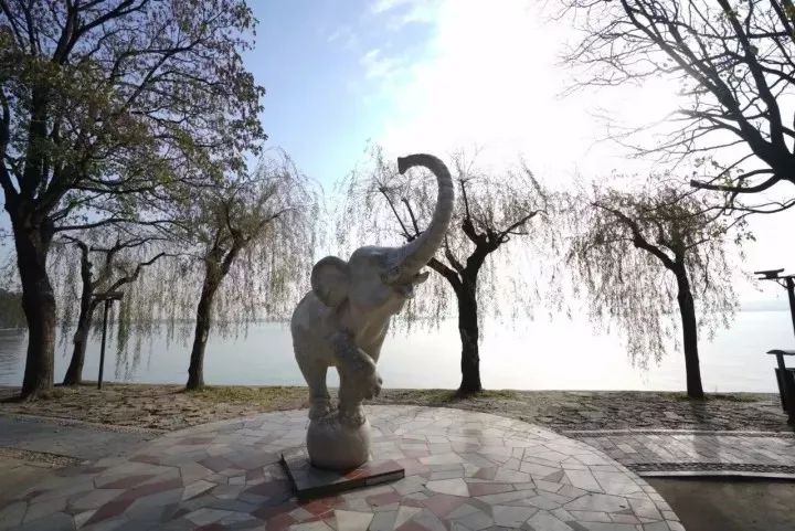 尽管东湖大白象建成于1974年那个遥远的年代,但在现今看来也丝毫不逊色,3只脚踩踏在一个圆球上,一只脚俏皮地翘起,长长的象鼻伸向天空,造型活泼可爱、栩栩如生,与周围的景色形成一个整体,传递出一种动感与趣感,可以说营造出了一种“静中有动”的艺术境界。