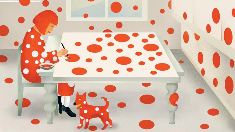今年,纽约现代艺术博物馆 MoMA 的绘画与版画部门的策展人 Sarah Suzuki 执笔,联合插插画家 Ellen Weinstein,创作了一本讲述日本当红艺术家“波点女王”草间弥生的童书绘本,记录了自艺术家在日本童年、早年以点点南瓜逃离日本的严谨文化束缚、表现了个人世界观的诠释,到搬至纽约的生活创作等。