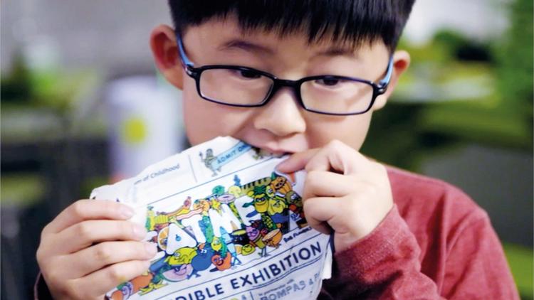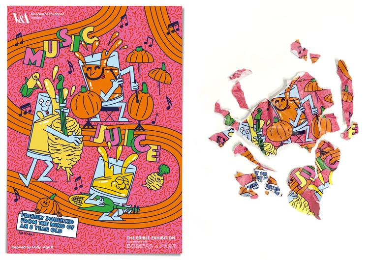 今年 10 月,英国伦敦的 V&A 儿童博物馆(The V&A Museum of Childhood),推出了世界上第一个“可以吃”的互动展览。伦敦插画师 Rob Flowers 还为其创作了一系列海报,同样也是可以食用的。海报是用不同口味的可食用墨水打印而成,因而为每款展品定制的海报味道都是不同的。如果你对这个项目感兴趣,可以查阅我们此前的详细报道,《V&A 儿童博物馆举办了一个可以吃的展览,蔬果味的!》