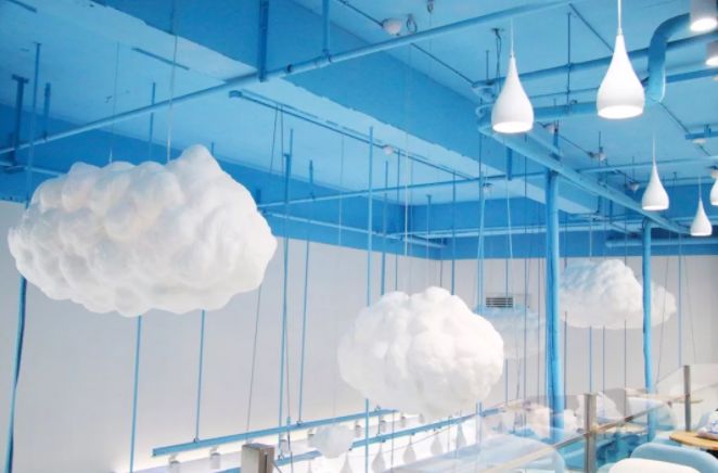 二楼区更设计了纯白色云朵、灯具进行搭配