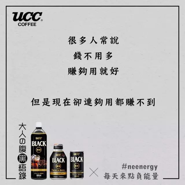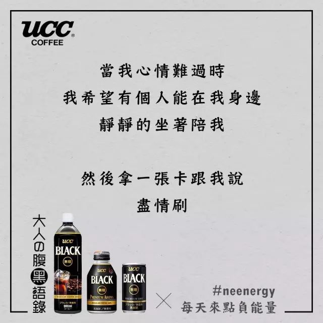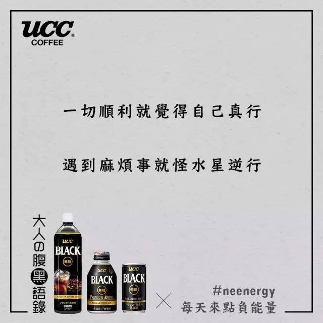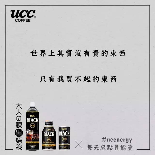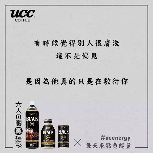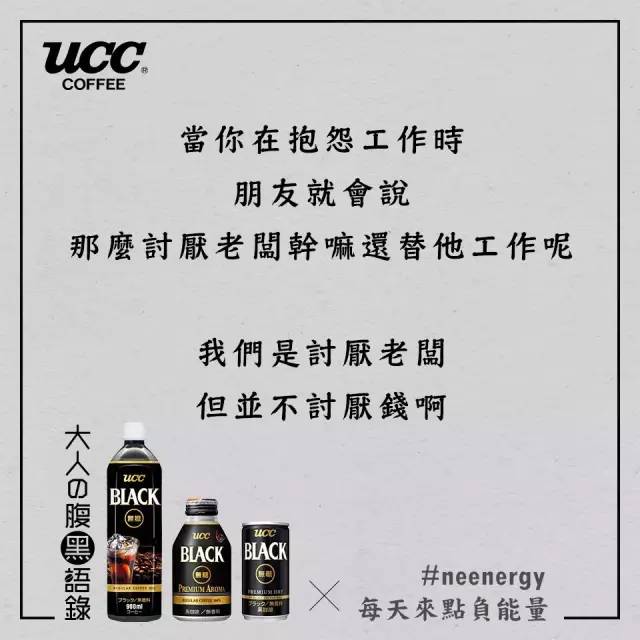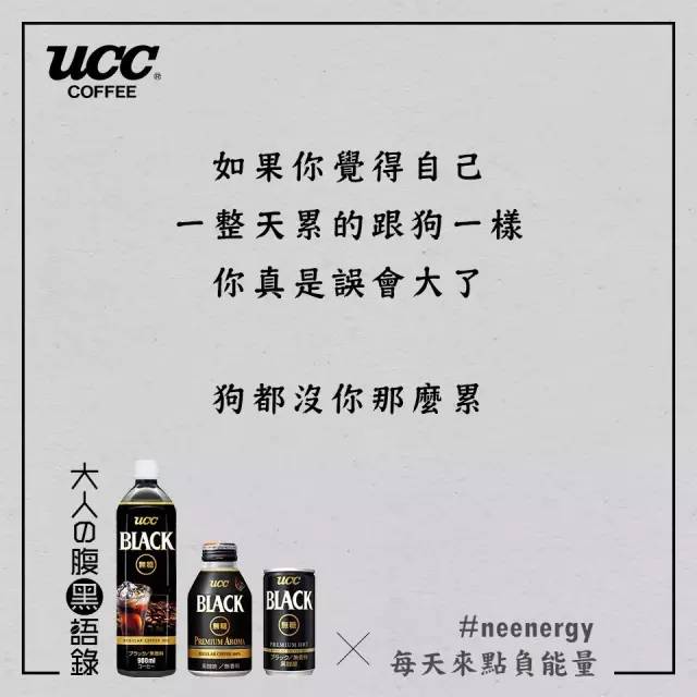日本UCC咖啡看到了都市人的烦恼,用“丧文案”玩起了负能量营销。还举办了一场腹黑语录分享大赛,于是网友们内心的吐槽之力纷纷爆发了。