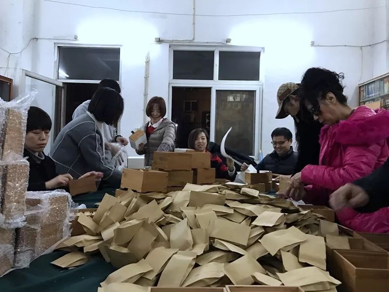 2017新年前,全体员工为客户年会封装大众设计原创包装的茶叶伴手礼。