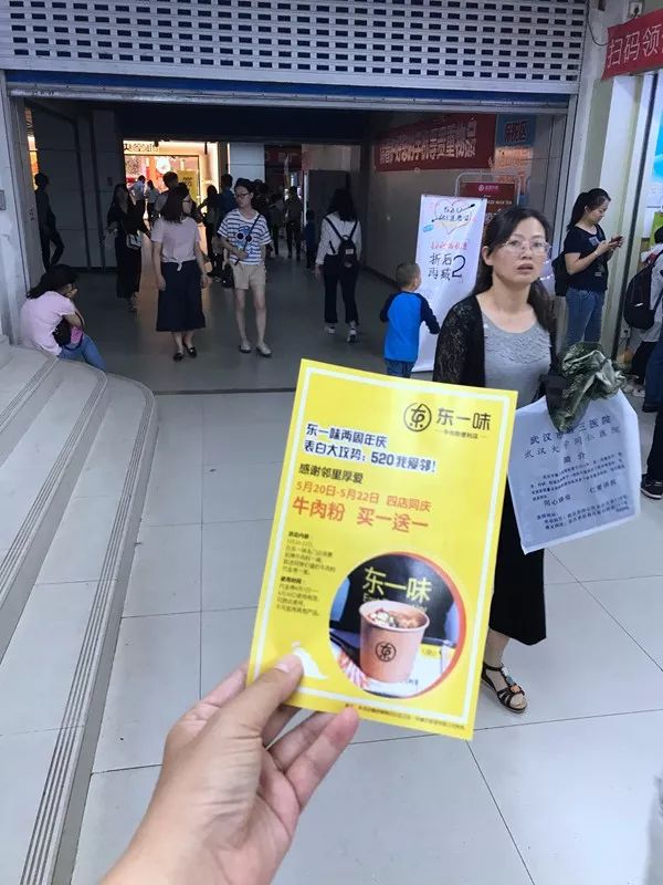 考拉姐在光谷广场亲自为客户“东一味”牛肉粉派单。