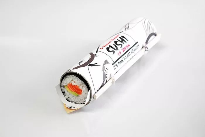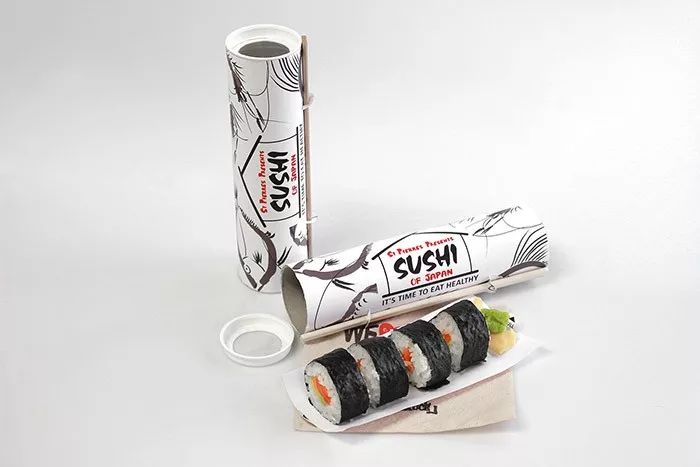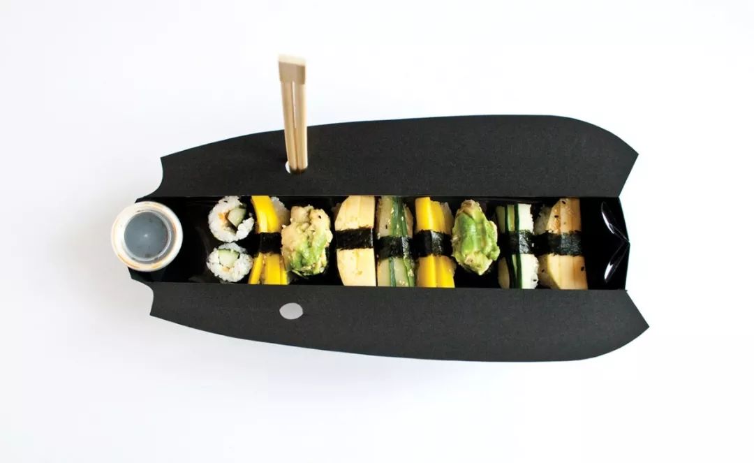 设计师Gerlinde Gruber以鱼和船的流线造型,设计了这款简洁又功能齐全的寿司外卖盒,在包装的一端还特意留出了酱油罐的位置,防止不慎洒出。