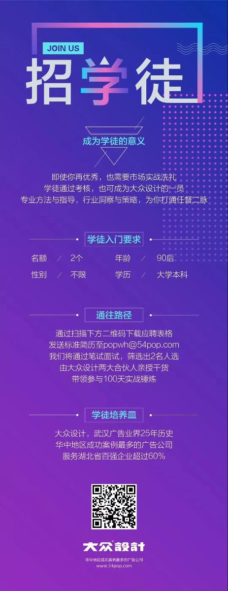 大众设计在不影响客户重要进度的前提下,全员每周五下午四点都将鉴赏一部优秀电影,更开阔的视野,更广泛的品位提升,更能保持高水平的思想输出。现在大众设计正在招收新一季学徒练习生,无趣的人不要约!