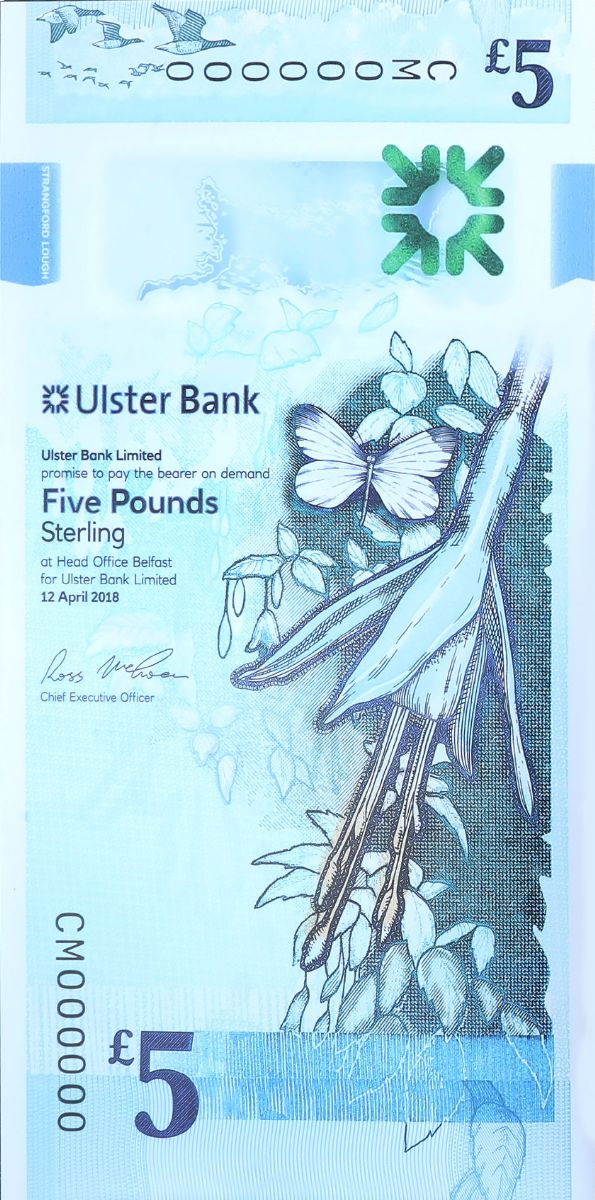 从新版5英镑的照片中可以看到斯特兰福德湖(Strangford Lough,北爱尔兰的一个大海湾)的风景和布伦特鹅的形象,而新的10英镑上将会有厄恩湖(Lough Erne,北爱尔兰的另一个湖泊),以及爱尔兰野兔和吉尔德玫瑰灌木。
