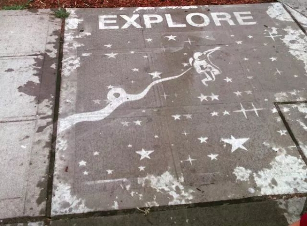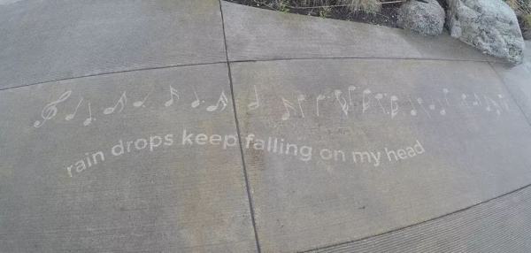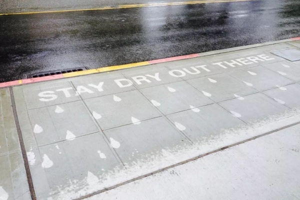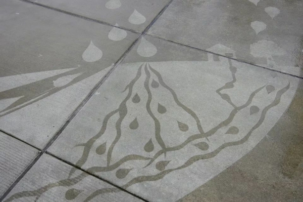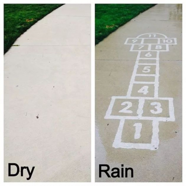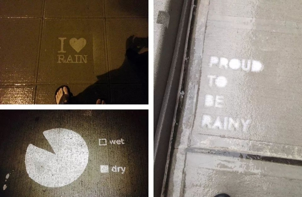 由于喷上疏水材料的地面不会被雨淋湿,所以一到下雨天,这些作品就魔法般地显现了出来!