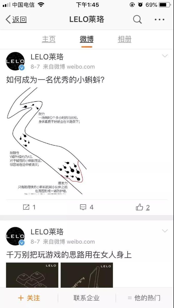 当杜蕾斯广告一次又一次刷屏我们的微信与微博的时候,这些品牌的社交账号打理得还很原始。以LELO为例,粉丝数十万而已,内容没有深层互动性,更缺乏系统的品牌形象运营管理。甚至于,在该营销的主题节日,很难看到一款还不错的出街海报。