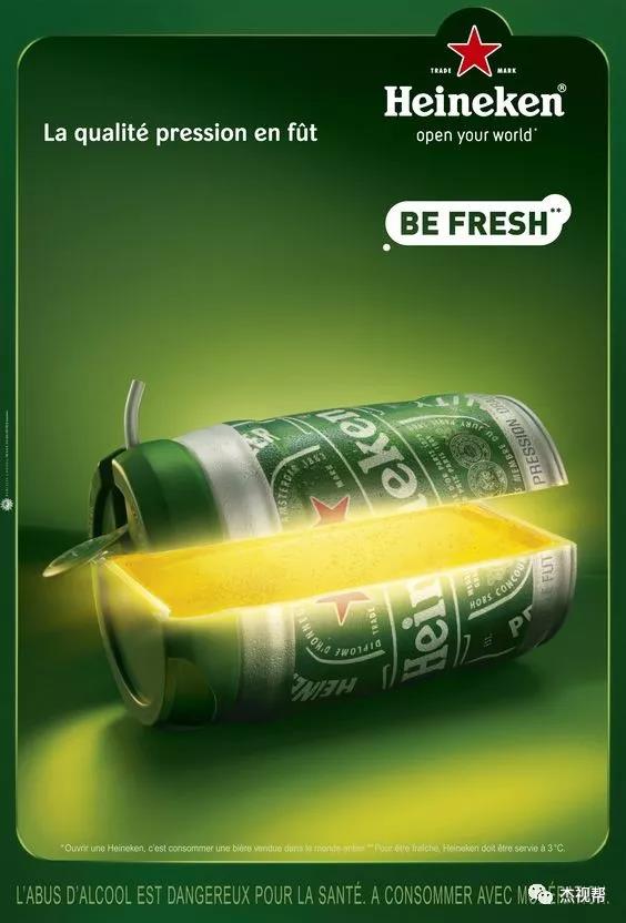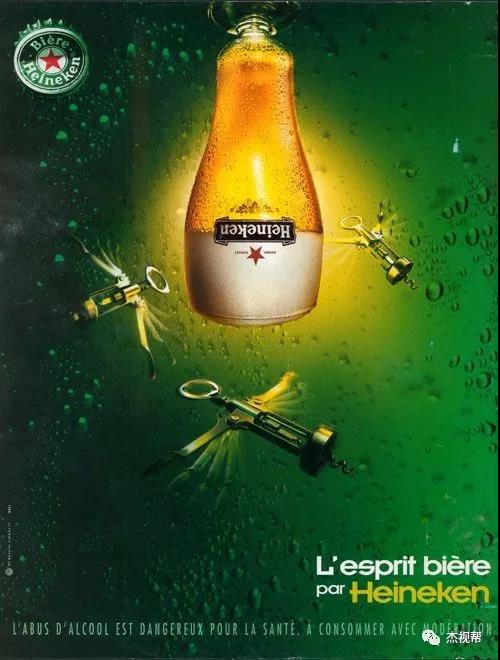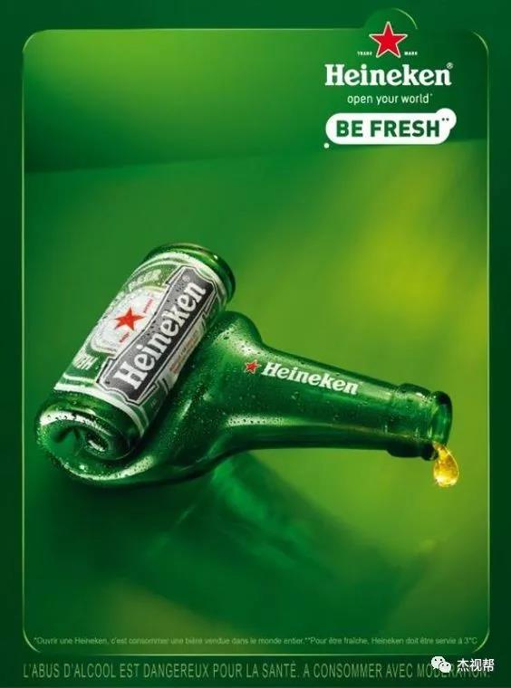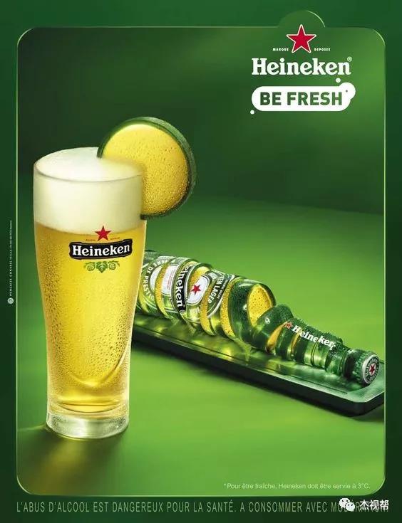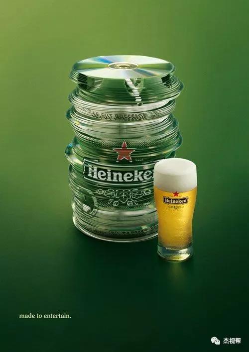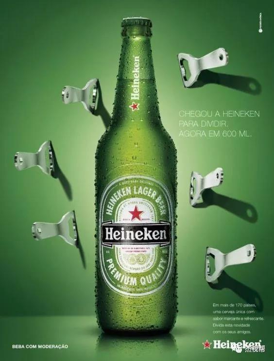 而来自荷兰的世界第四大啤酒厂:喜力啤酒厂,更是在设计上下了不少功夫。虽然包装上没有农夫山泉花样繁多,仅非常克制的在红星与绿皮上做些小改动,但它的创意广告倒是非常多,各种脑洞大开的海报,让人叹为观止!