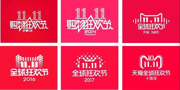 2013-2018的logo变化,每次双十一logo都要在一个简单的图形上做变化,设计师不容易啊!