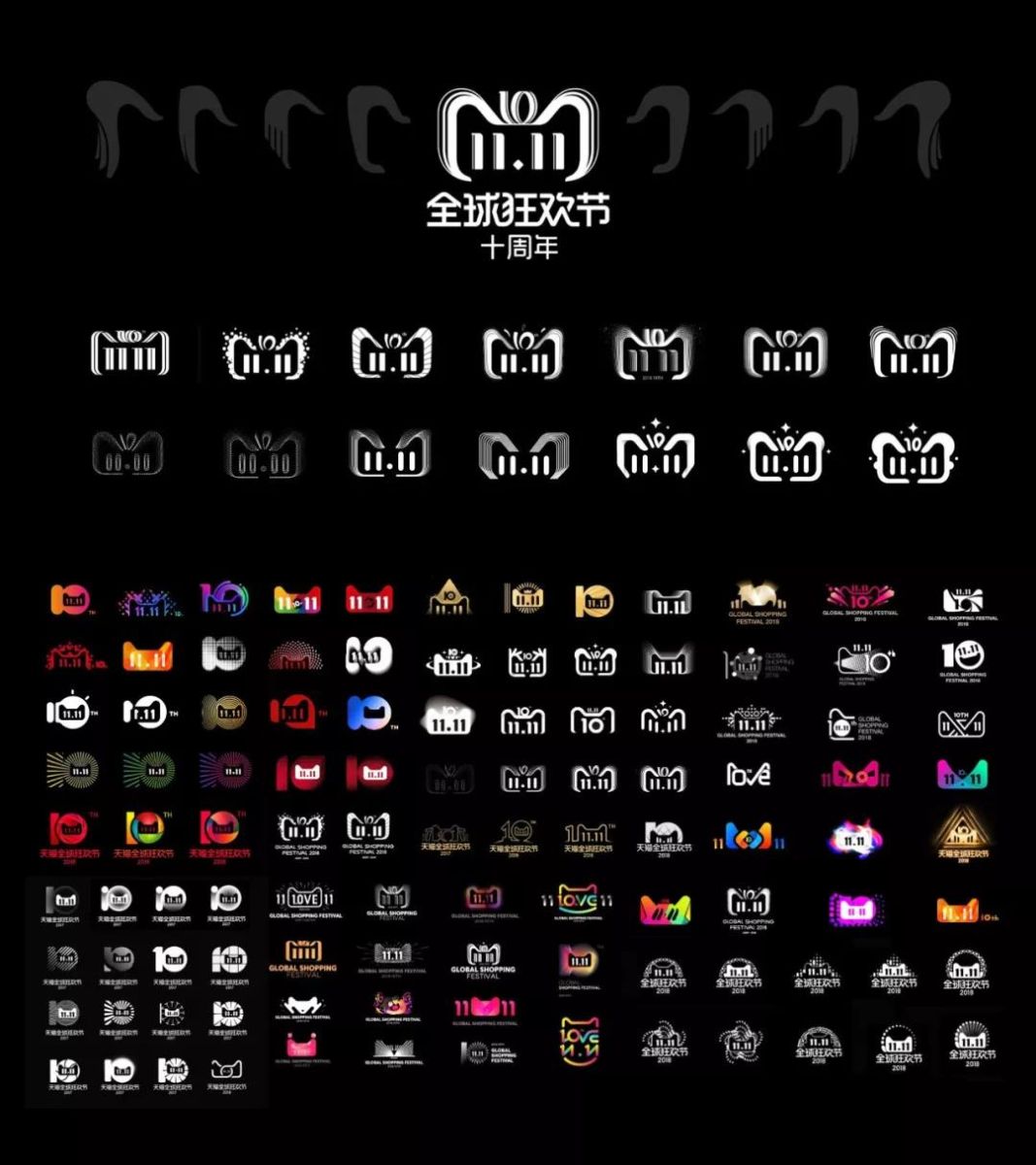 昨晚阿里揭秘了双十一品牌的设计过程,我从里面发现这次十周年的logo居然高达117个版本(希望我没数错)震惊了!!!