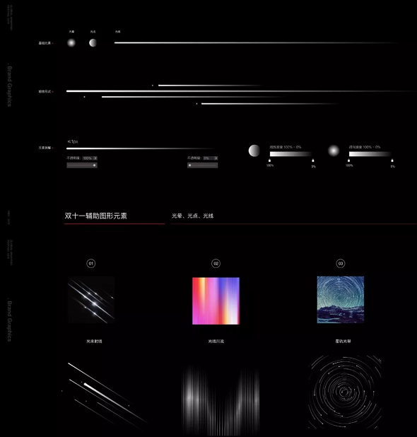 基础元素是:光星、光点、光线,然后就是提炼、组合,变成面,最后应用到设计中去。