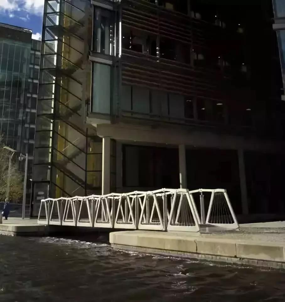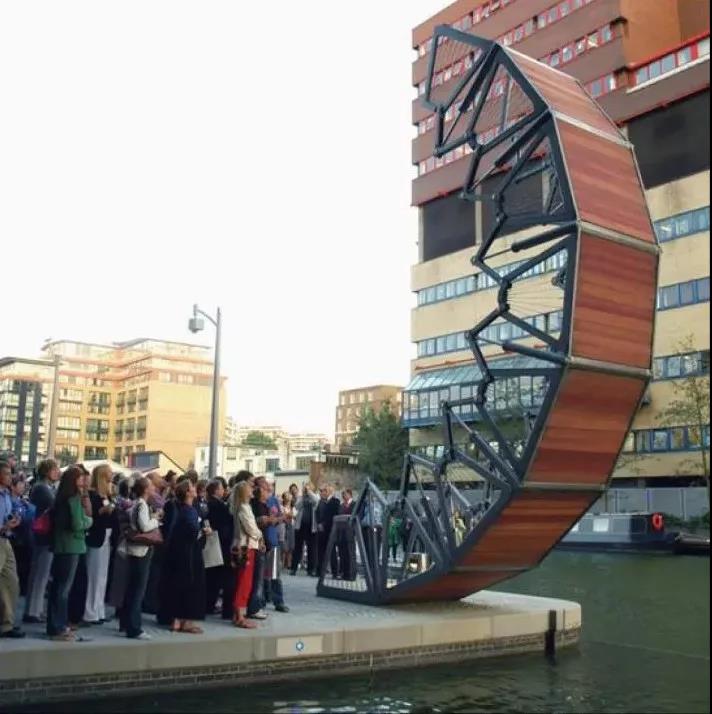 而桥身之所以能够卷曲,就在于 Thomas 在栏杆内安装了水压装置,后来这个大胆而新颖的创意让他名气大增,在英国设计界占据了小小的一席之地。