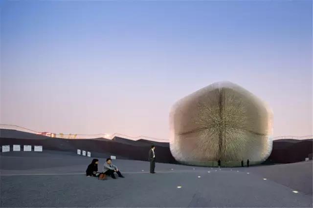 这个设计颠覆了传统的建筑模式,由 6 万多根透光性亚克力杆构成巨大的“蒲公英”建筑,每根长 7.5 米,连通内外。