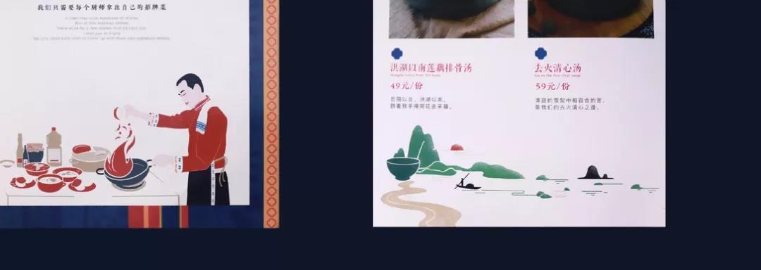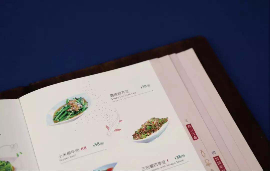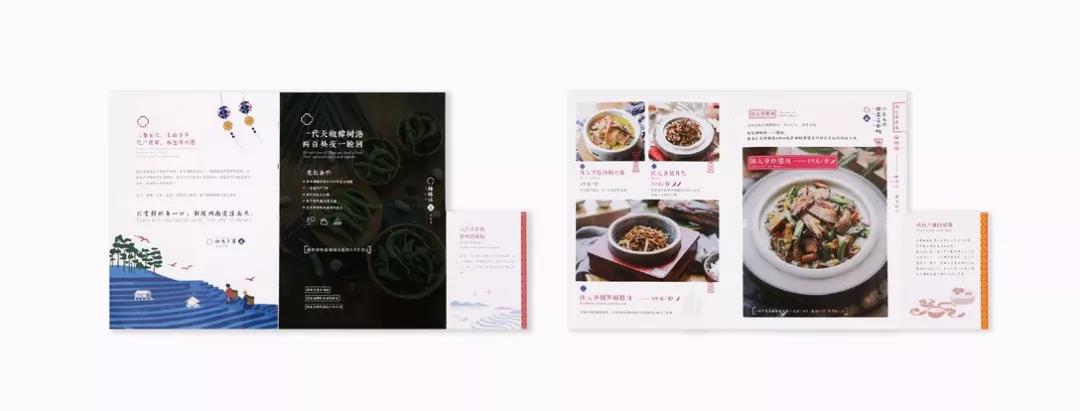 从以上两家餐厅的菜单设计中不难看出,菜单的设计越来越精致、追求细节处理,根据目前的市场发展趋势和消费者需求,采用创意有想法的书籍工艺,内容里适当添加一些插画形式和文案设计。且在地方菜的餐厅,也逐渐把地方的特色也融入其中,这不仅能提高自身餐厅的辨识度和差异化,并且能潜移默化地让更多消费者了解和接纳不同的地方文化,真的是一举两得了。