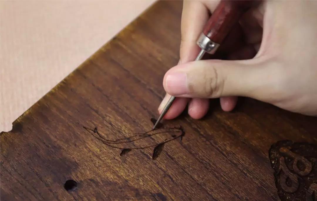 提取标志笔画进行镂空处理,表面附有斑驳纹理