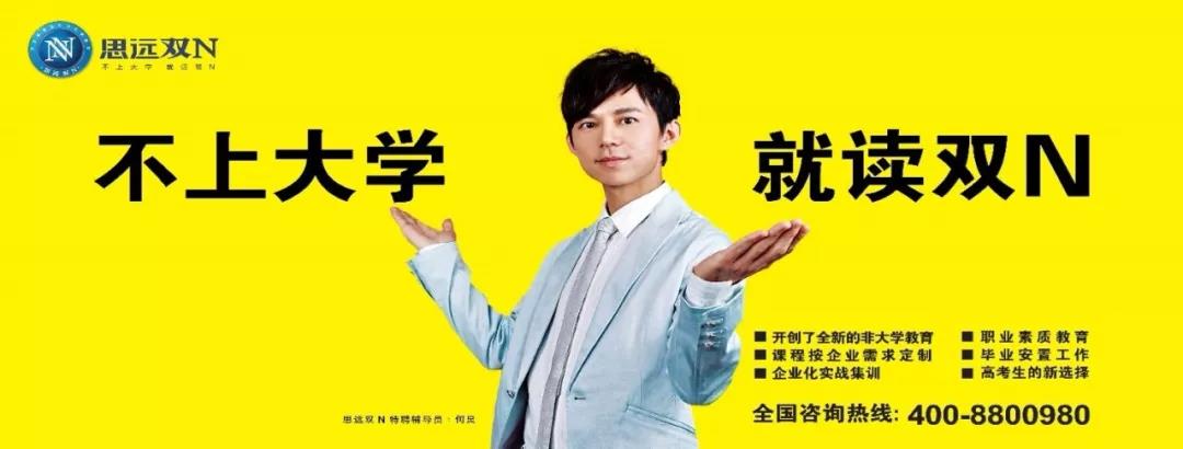 不上大学,就读双N。大众设计为思远双N进行了差异化定位及全程的营销方案执行。合作6年间,大众设计为思远围绕着“不上大学,就读双N”的广告语创作了近二十支广告片,每一支广告片都为思远带来了大量的电话回馈,甚至每当思远的新广告片播出后,引起竞争对手的效仿都成为了惯例。思远每年的销售额数以亿计,其中电视广告是起到了关键作用的推广工具,可谓每一秒都价值万金。