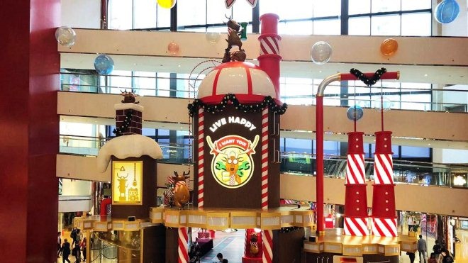 商场还设有天马行空的巧克力工厂,在圣诞季期间,可可豆收集员会四处采集最佳的可可豆,在巧克力工厂内制作欢乐滋味的巧克力,从“巧克力塔”一直流到“可可机房”。
