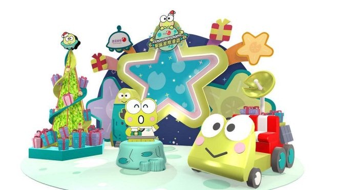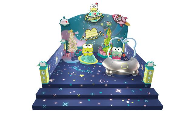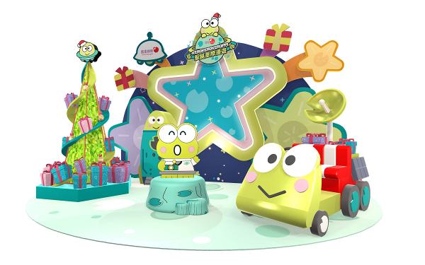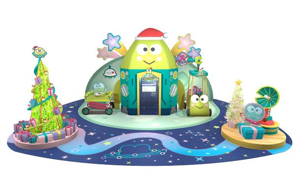 红磡置富都会“Kerokerokeroppi圣诞星际奇遇记”,Keroppi造型卫星车满载礼物。