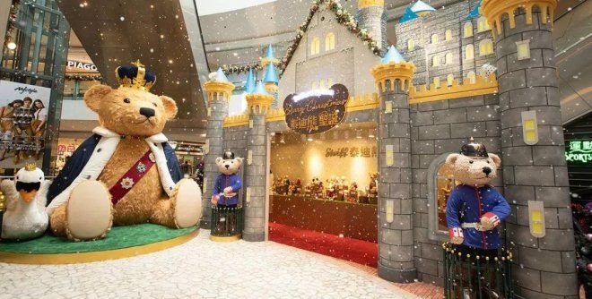 德福广场圣诞引入全球首次亮相的4米高的国王泰迪熊,现场还有超过100只不同造型的熊啤啤,还有德国著名新天鹅堡模型。此外,现场也有德国主题市集,卖各种传统德国圣诞精品、美酒美食等。