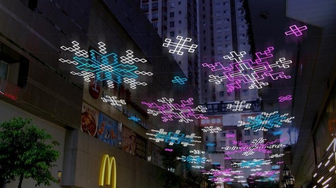 同时,今年海港城设置了全球最大(长16米、宽4.5米、高4.5米)的影像万花筒,将融合音乐与影像、透过万花筒底部的LED屏幕播放同巨型三角镜折射,让大家犹如置身万花筒内,并为大家呈现雪花、圣诞树、闪亮星星和彩虹隧道等多个圣诞场景。