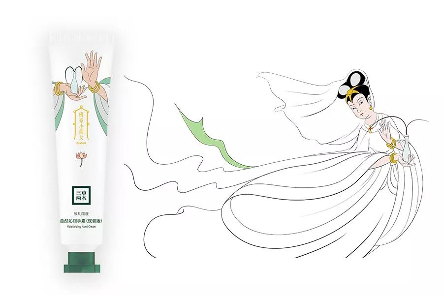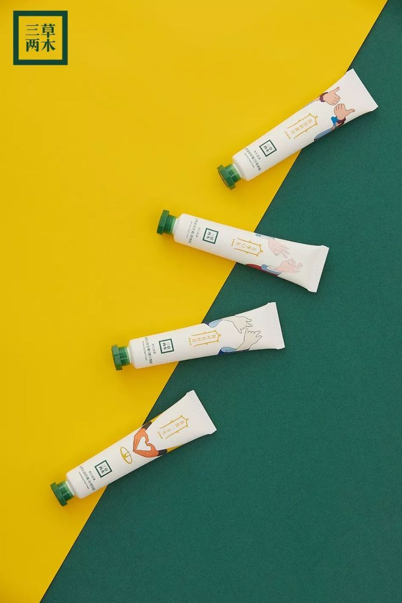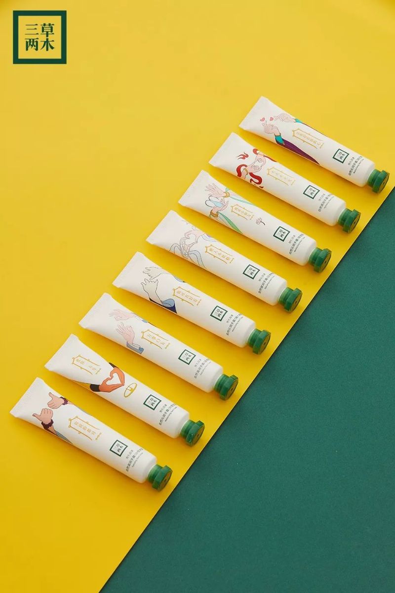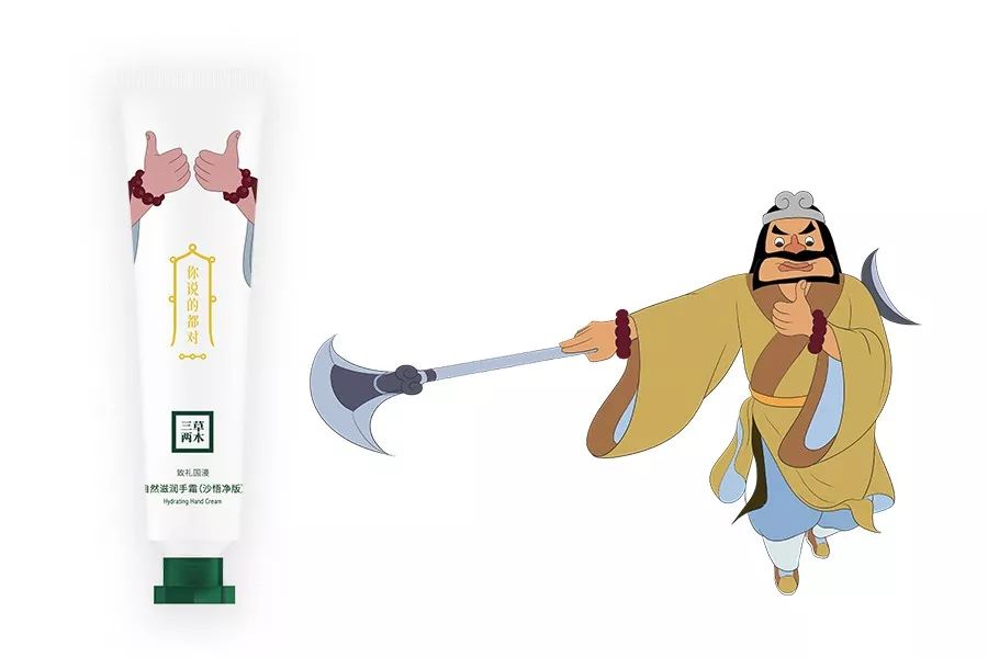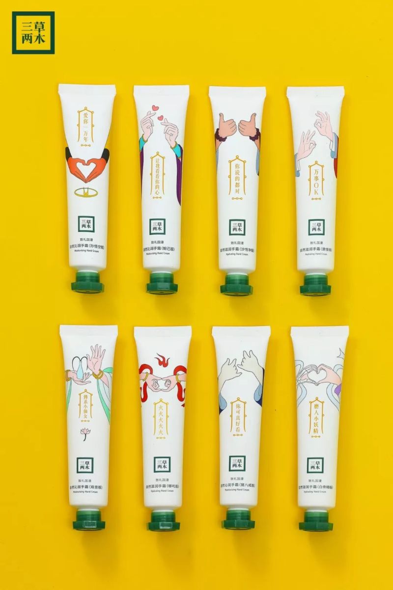一个“手”字,将国漫、手霜、民族文化的传承与守护三大元素有机的串联起来,配合独特的人物标语+手势+怀抱的瓶身设计,让整体的IP合作显得用心太多。比起简单粗暴的logo组合,三草两木花了更多的心思来思考IP跨界的意义!