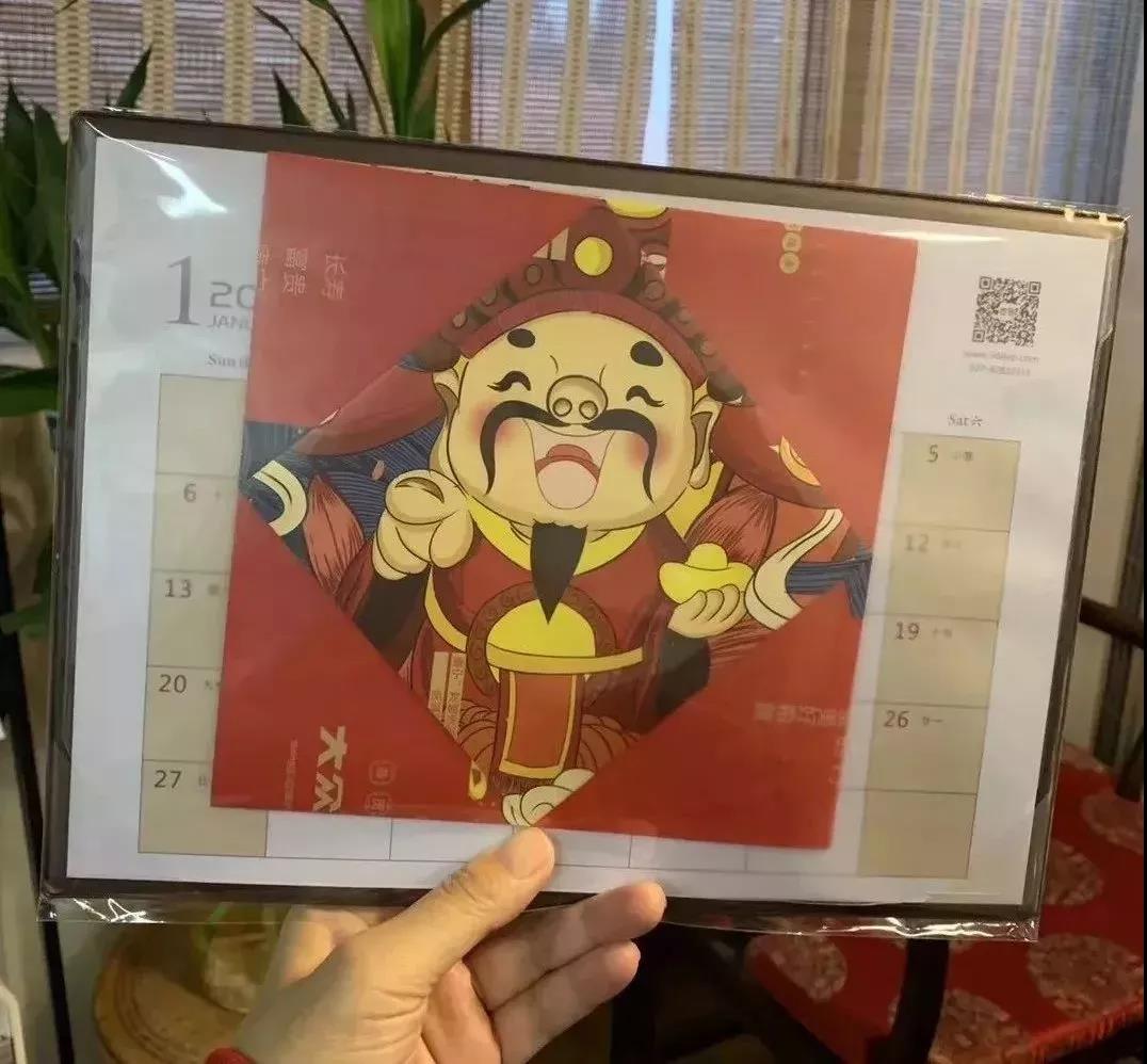 打开这本台历,首先是一位笑脸盈盈的财神向你拜年,恭祝一年的喜悦。