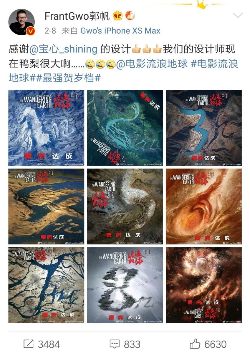 其中,最精彩的应该是网友@宝心_shining设计的票房海报,连导演郭帆都亲自转发了。