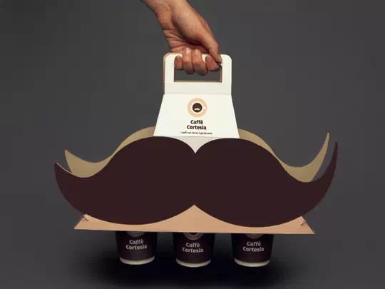 包装设计经常会采取一些吸引眼球的视觉元素,来加深消费者的印象。比如某咖啡的外卖,做成大胡子的样式,在视觉上给人留下印象。