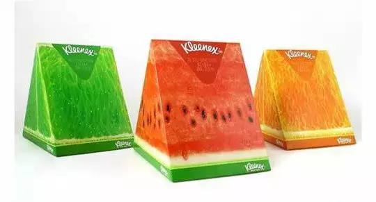 果汁的包装,直接设计成水果的截面,用天然的颜色让人产生食欲。