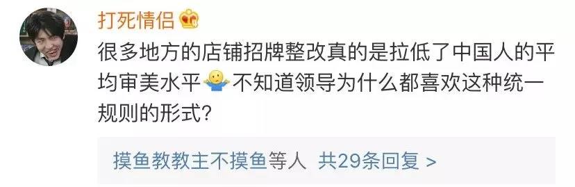 虽然我国目前的店招审美水平,说来还不太尽如人意。提高审美水平也不是一朝一夕能改变的事情,(为什么审美水平普遍不高?大概是因为上学的时候美术老师老“请病假”吧)但统一招牌这种包办的模式,无疑是把原本自然发展的当地文化扼杀在摇篮里。
