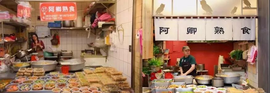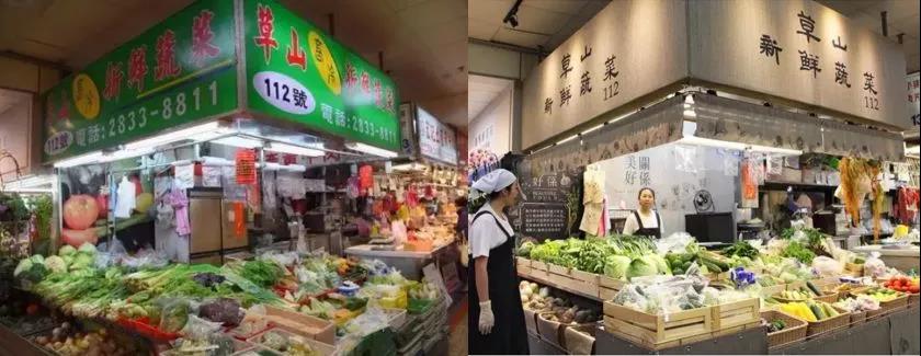 所以,即使是改造,也应该适当的保留当地文化或门店特色。同样是店招改造,台湾士东菜市场也经历过一次。但每家店的招牌,都被设计师精心设计过,是传统特色和当代审美的有机结合。