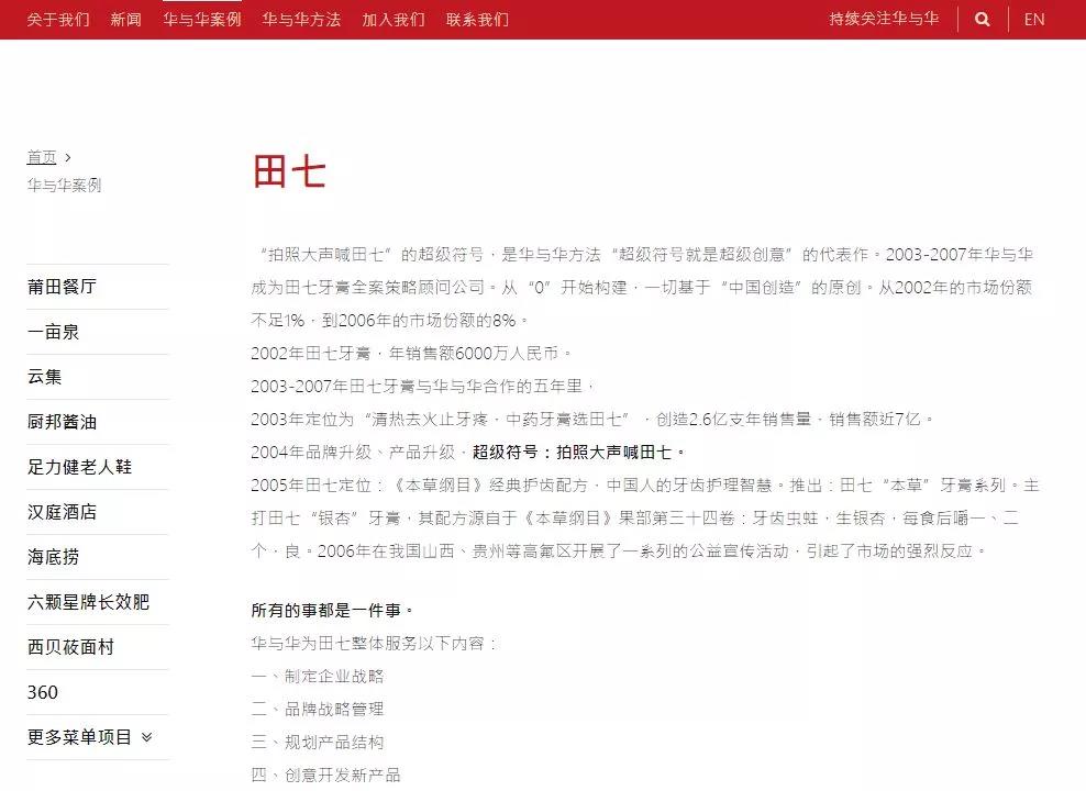 拍照大声喊田七,是田七老总的老搭档华与华为其打造的超级超级符号,在当时也为田七的奋力上升起到了非常有力的作用。至今,田七仍是作为经典案例,在华与华的官网上。