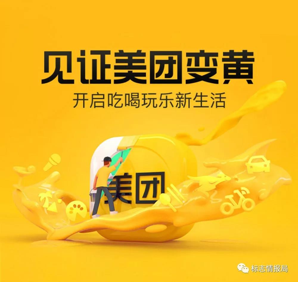 昨天,美团宣布更改现用品牌色,由此前的蓝色系改为黄色。