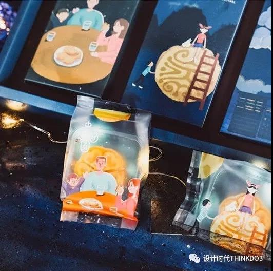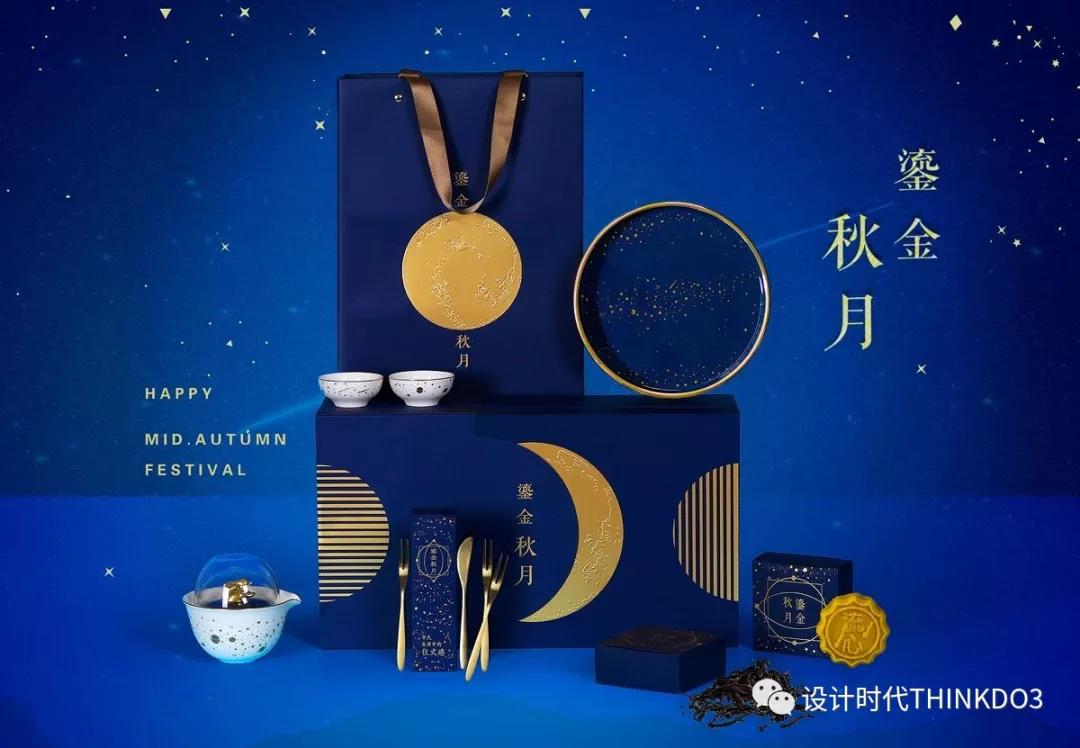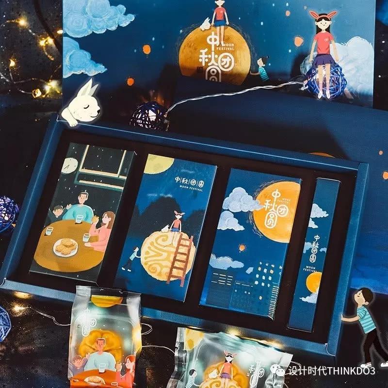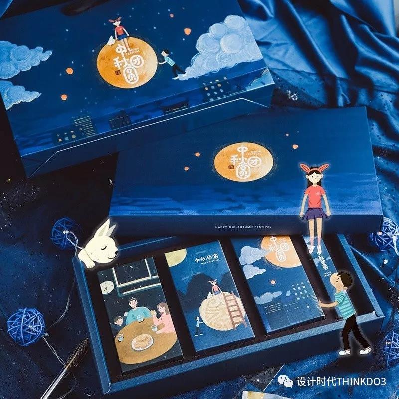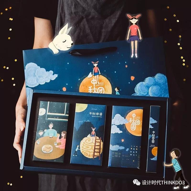 这款礼盒用手绘描绘出蔚蓝的星空和八月十五的月亮