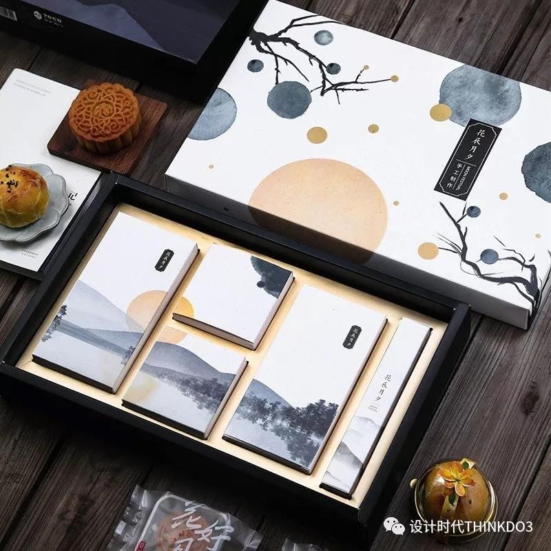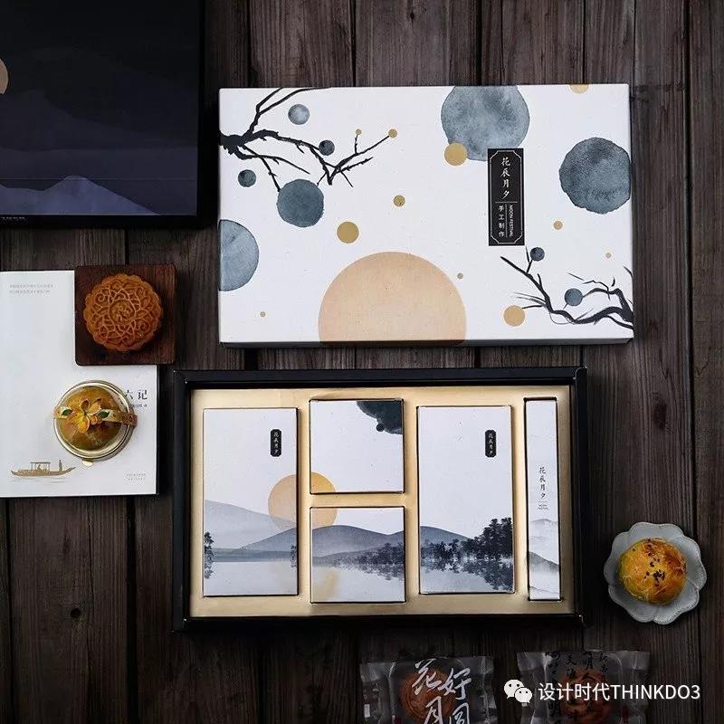 这款水墨礼盒用了淡雅的色系处理,图案上的斑点采用的是UV工艺提亮,色彩明亮不显单调。国画古风再搭配上中秋的主题,浑身散发着浓浓的气质~