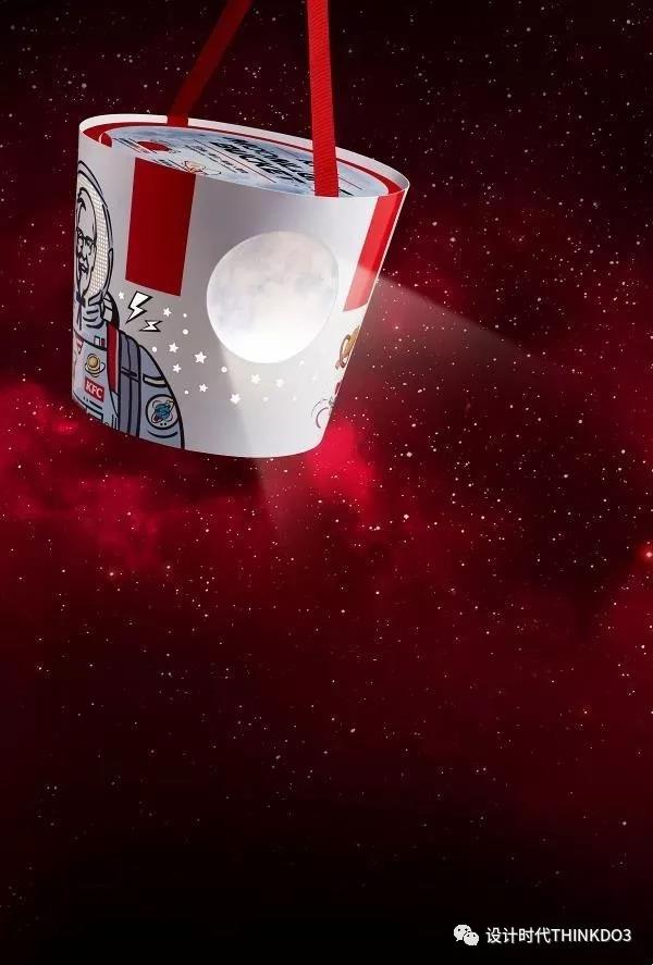 全桶顾名思义 “月光桶” 就是可以将它在晚上携带出去,可以见到桶身将肯德基上校穿上了太空服,并设计了两个透明月亮在桶子两侧,提供 LED 灯照射,在夜晚中发光就可以像提着灯笼一样把它提出去,相当有趣。