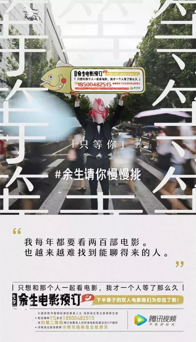 节日市场,每一个人都能成为终极消费者,即便是情人节里的单身狗。关心单身狗,也是关心市场,腾讯视频就替单身狗发出自白书:“余生请你慢慢挑”。