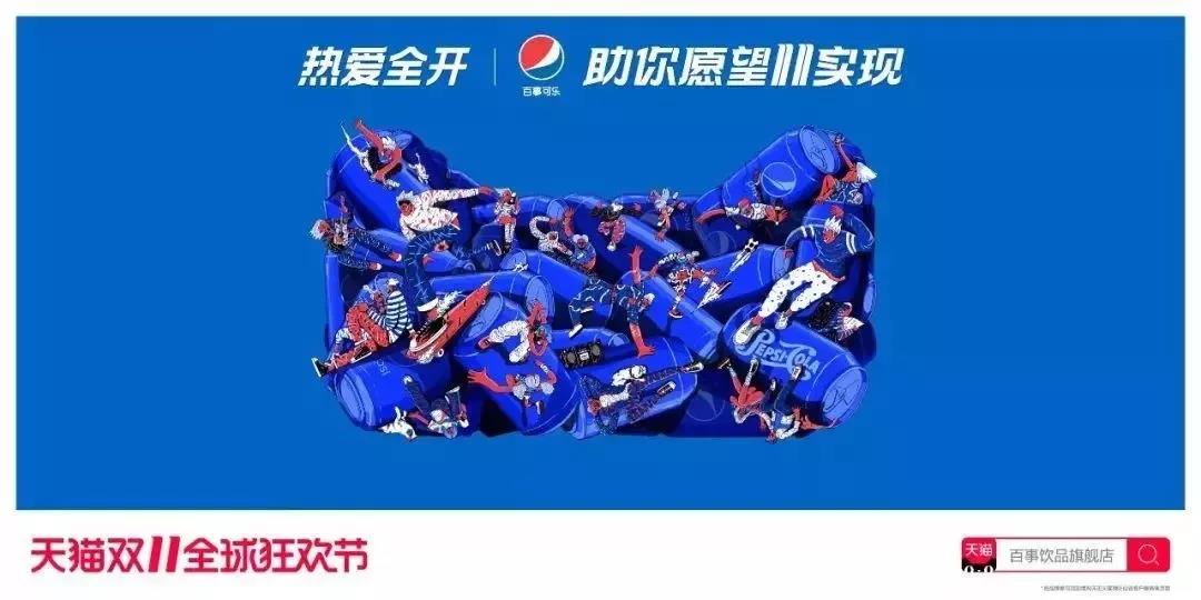 今年,天猫与30个品牌联合推出了30张海报,主题为“……助你愿望11实现”,各大品牌联合天猫祝福所有人“愿望一一实现”,这样的文字游戏还是挺让人感动的。