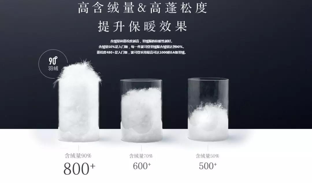 内里方面,波司登采用了800+高蓬松度含绒量90%的欧洲进口白鹅绒填充,红外线科技蓄热。