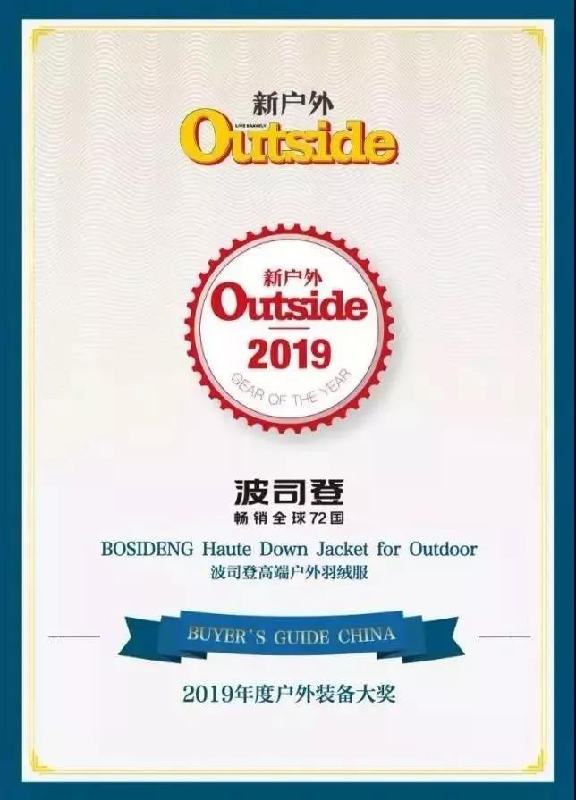 在苛刻近乎完美的品质追求上,波司登品牌价值被确认。其高端户外系列产品一举荣获“Outside2019年度户外装备大奖”。波司登也是中国唯一获此大奖的羽绒服品牌。