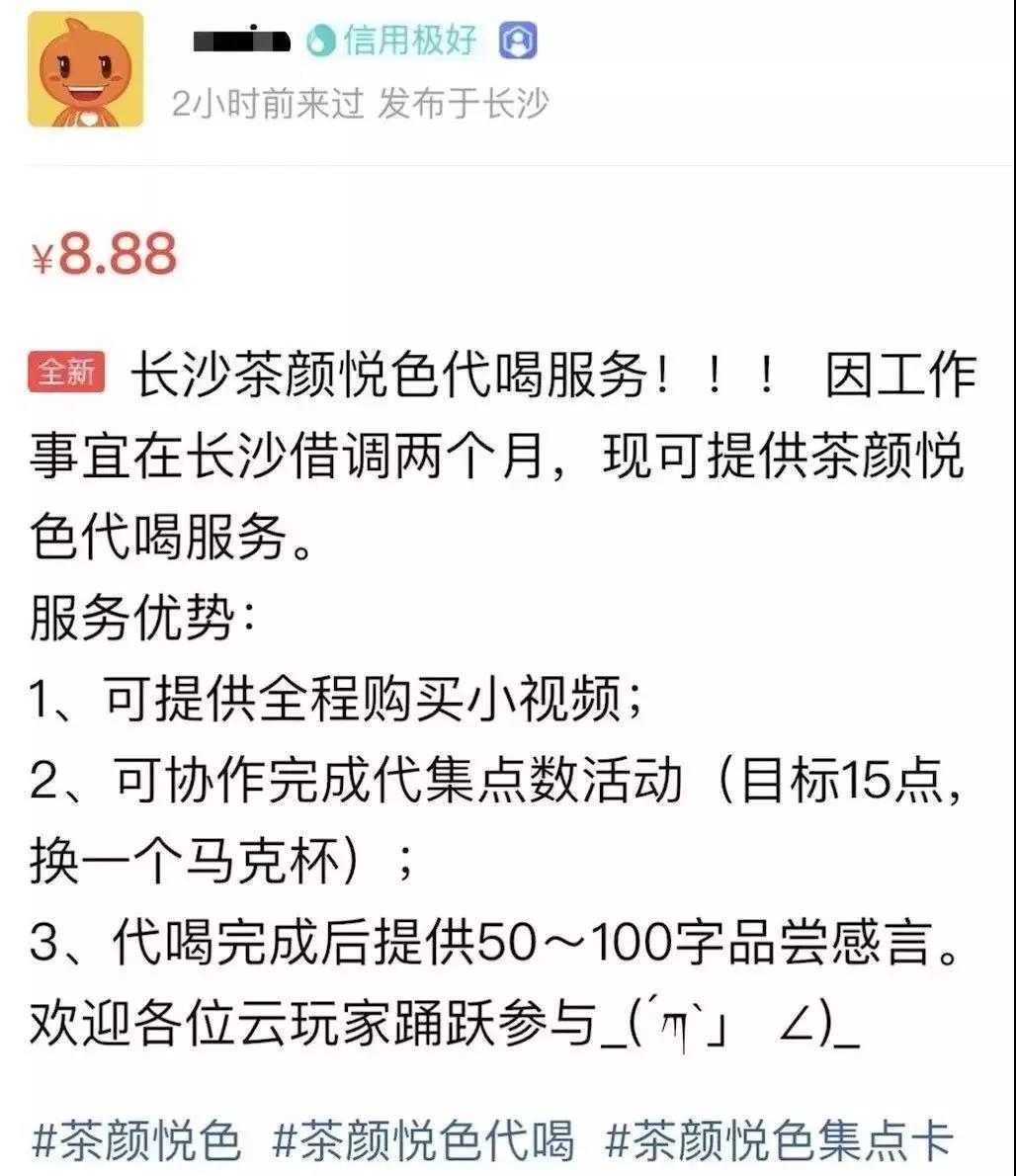 茶颜悦色,只在长沙开,只开长沙。如今“到长沙不仅要吃火宫殿臭豆腐”,喝茶颜悦色也成为打卡项目之一,甚至代喝业务也即时上线了。