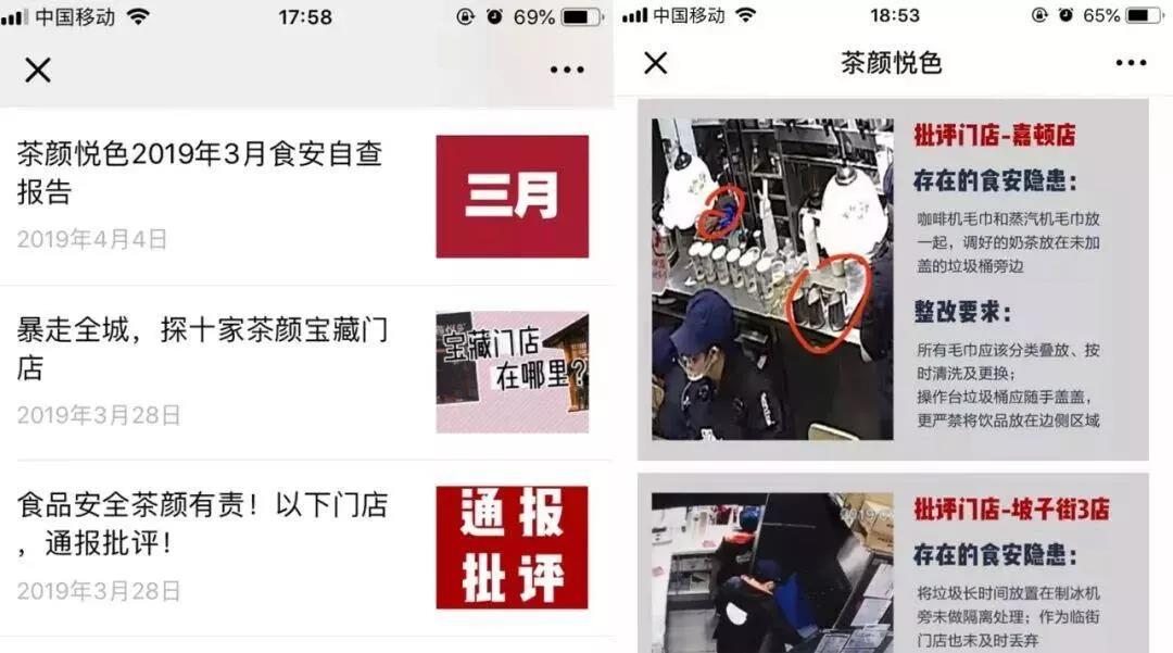 敢在官微、官方公众号上自曝家丑的品牌着实不多,茶颜悦色算是其中之一。同样做品牌公关,喜茶和奈雪对于自家负面新闻就没有茶颜悦色这样的胆量。评论无论是好是坏的,茶颜悦色都会放出来。不但会放出“差评”,每个月还会定期发布“食安自查报告”,直接通报检查的结果。接地气、不高冷,放得下身段,这种坦率性格也让茶颜悦色收获点赞无数。