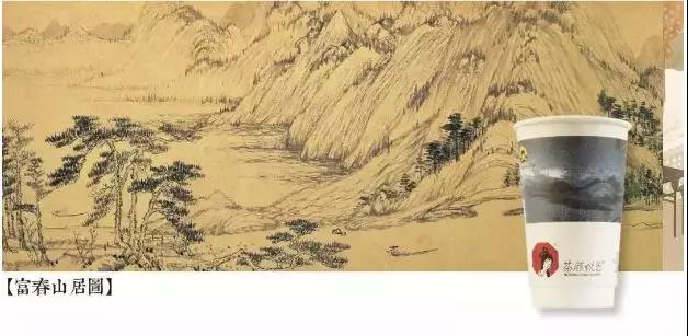 包装上,茶颜悦色也是一脉相承。为了做出品质,茶颜悦色曾先后买下宫廷画手郎世宁、以及其他名画的版权,提升包装逼格、档次。饮品杯子则采用富春山居图、千里江山图等名画,既有古典美,又有现代设计感。