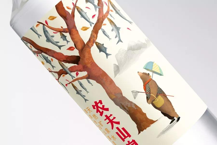 包装上的插画就更打眼了,画的是长白山的四季景色,并且动物还被拟人化了,像鹿穿上了西装、青蛙有了翅膀、猫咪从靴子里钻出来、鱼儿甚至都长在了树上。