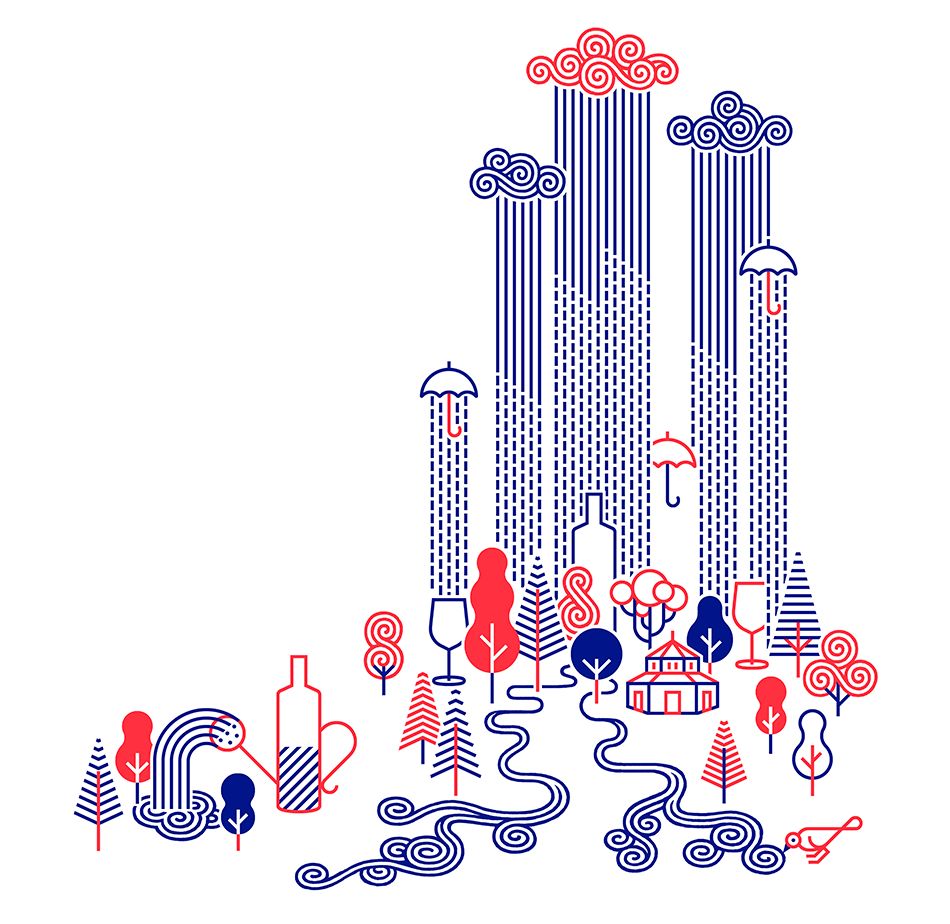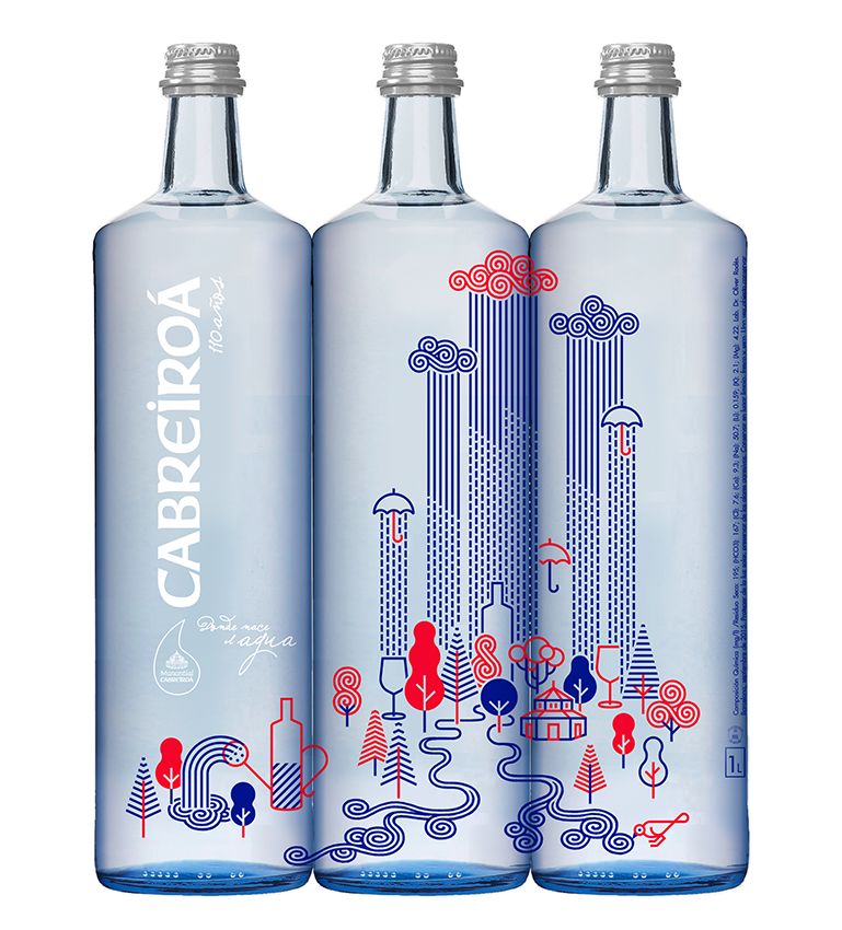 用品牌标志性的红蓝配色,展现了四种与水有关的主题:雨、岩石、植被、天空。现代的画风让矿泉水设计感十足,怕是很多人会冲着颜值去买它,又会冲着颜值喝完包装瓶都不舍得丢!