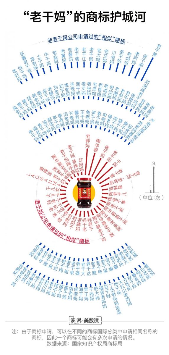 最近“逗鹅冤”事件中的国民品牌“老干妈”,他们更是注册了自己的商标护城河。